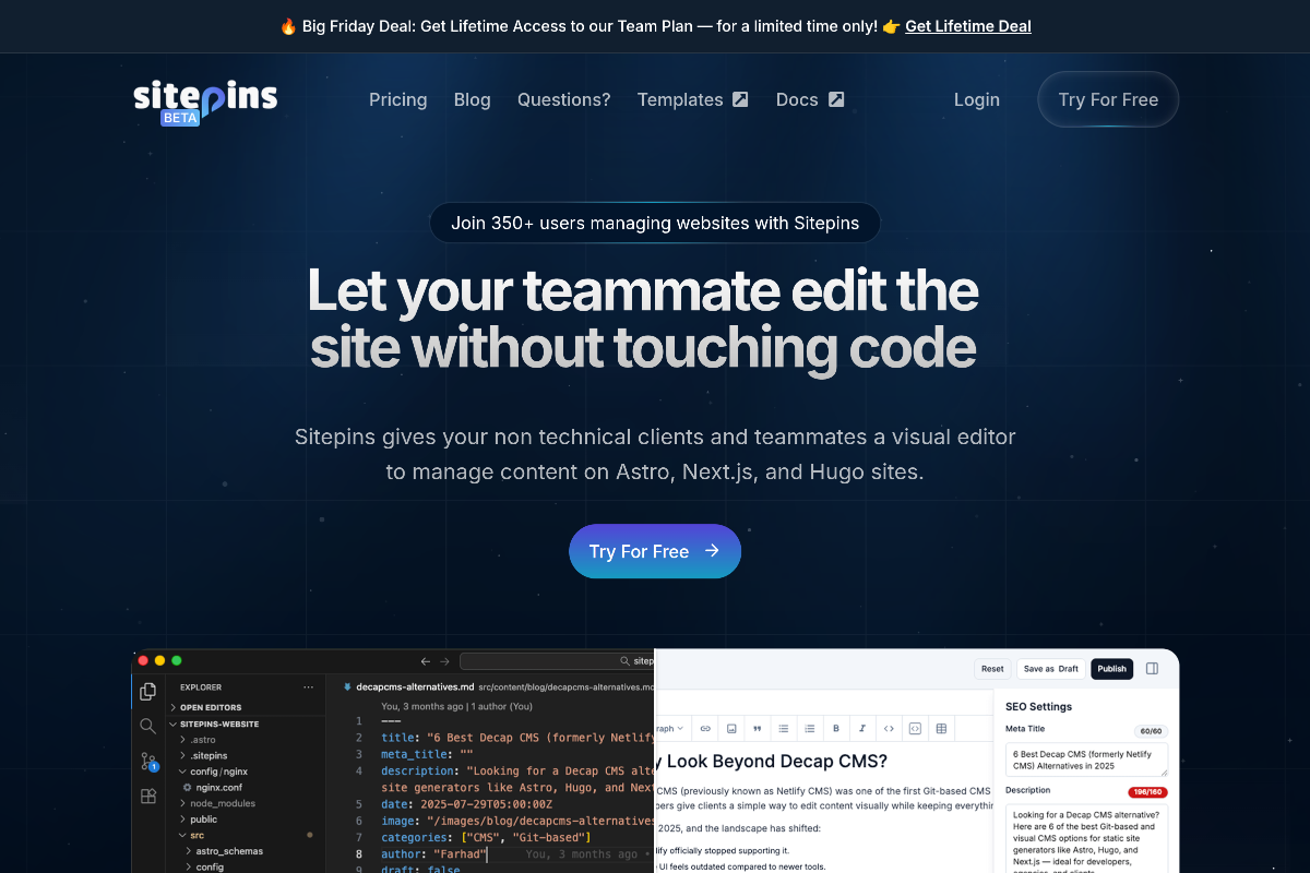 And, if you only want to use the CMS yourself, use frontmatter.codes, a great extension for VSCode that makes updating SSG websites a breeze.